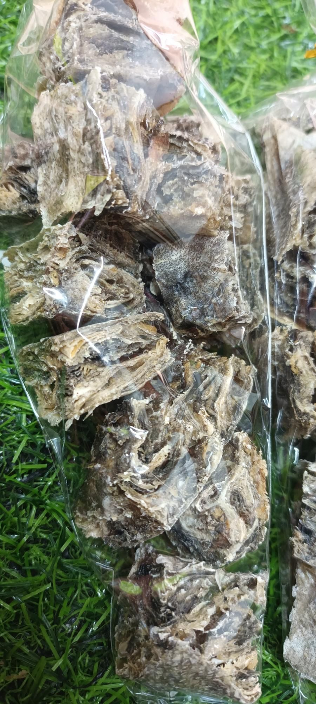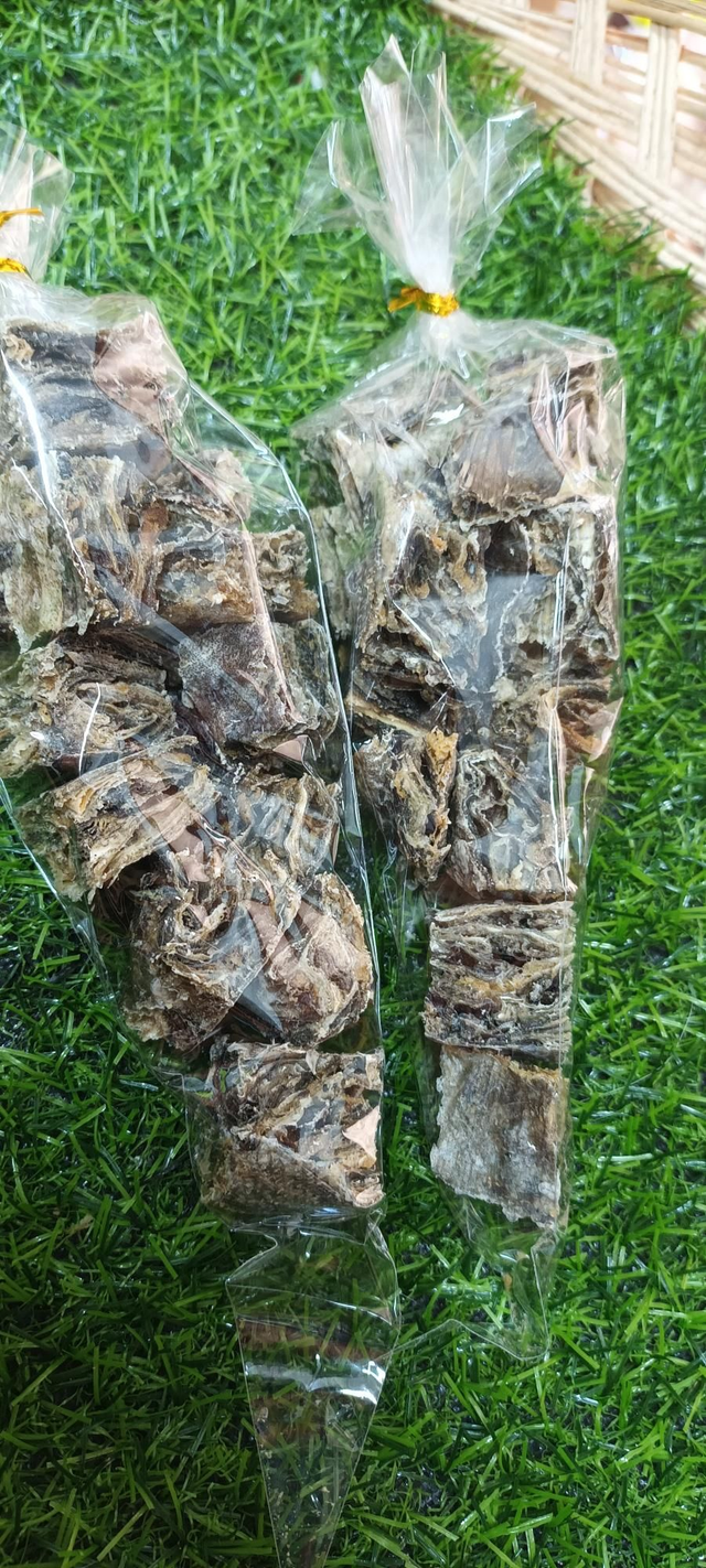 £3 worth of fish skin cubes in cone packaging